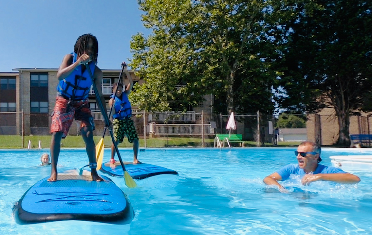 The success of Wai Koa led to the development of Junior Wai Koa, a summer camp focusing on disadvantaged youth, many of whom have never been on the water before. The idea started when kids from the nearby public housing community were stealing out of the vending machines in the marina where Capital SUP operates. Live Water Foundation recognized the need for them to have something positive into which to pour their energy. Now, working in partnership with the Housing Authority of Annapolis, Live Water’s corps of volunteers—who range from paddlers and community residents to collegiate swimmers and Annapolis Naval Academy cadets—help kids build basic skills such as swimming and paddling.